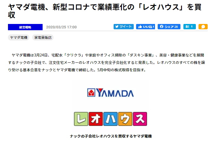 ①高級ハウスメーカーS×Lが倒産の危機の際にヤマダデンキが買収
